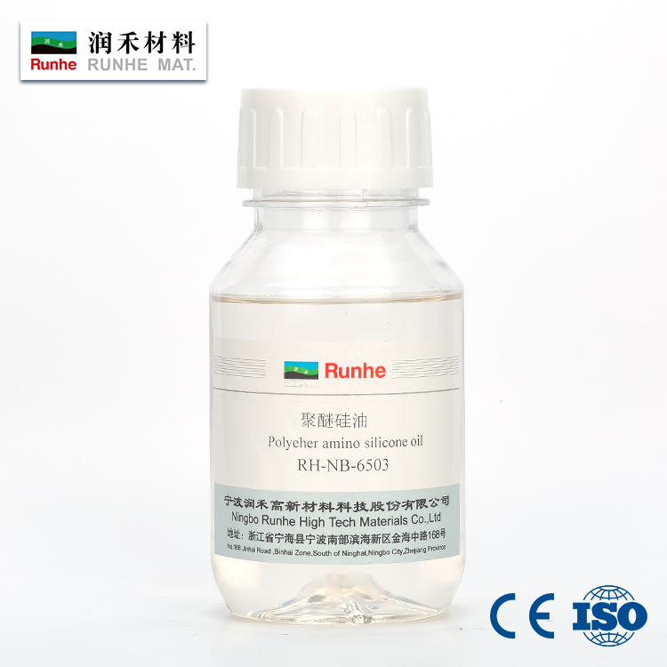 Polyether silicone oil RH-NB-6503 is a polyether modified polysiloxane,applied to allkinds of fabric,especially cotton,hemp and its blended fabric,endow fabric hydrophilic and soft finishing.